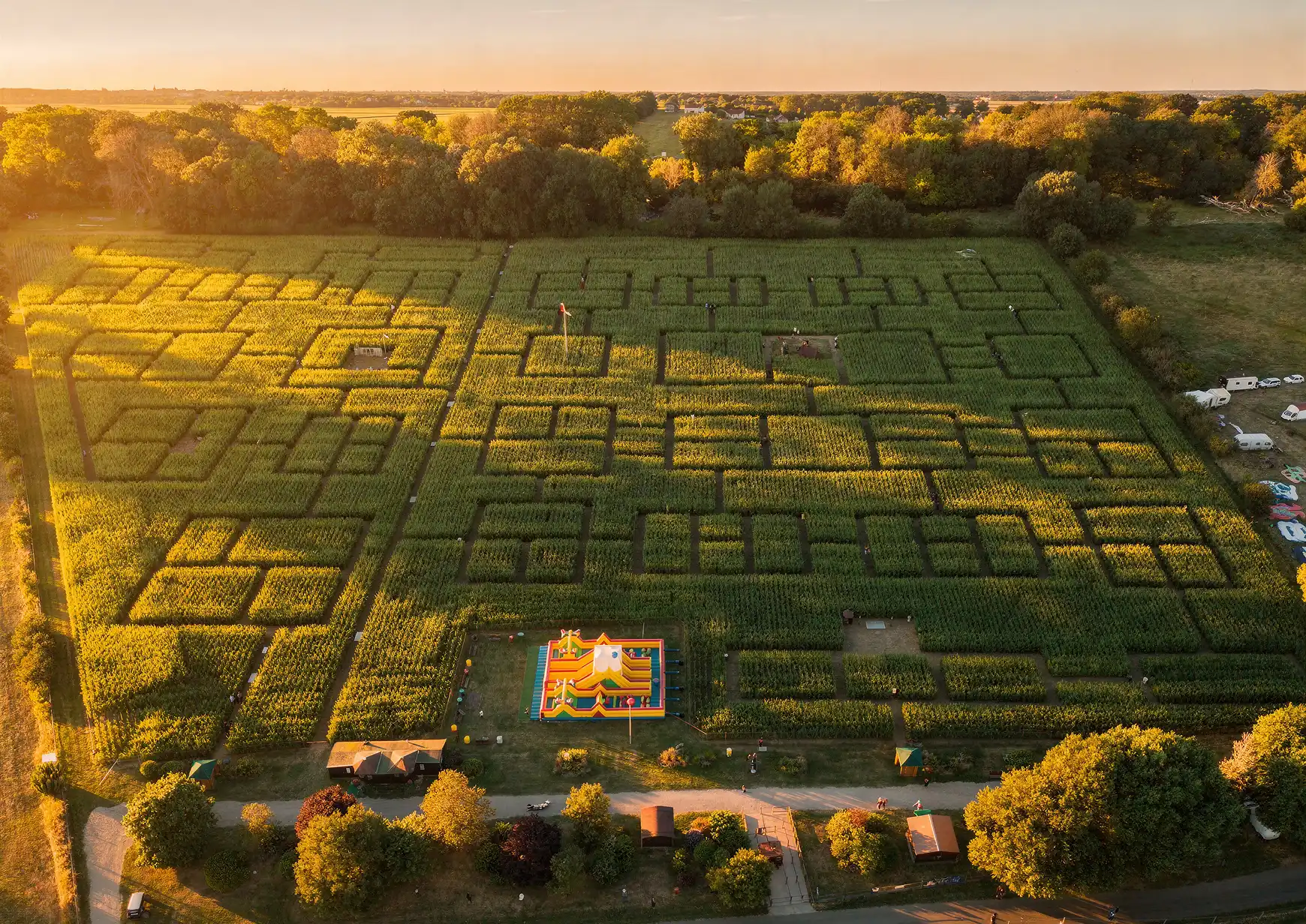A large outdoor maze in the countryside. Seasonal attraction offering walks, puzzles, hide‑and‑seek through hedges — fun for all ages.