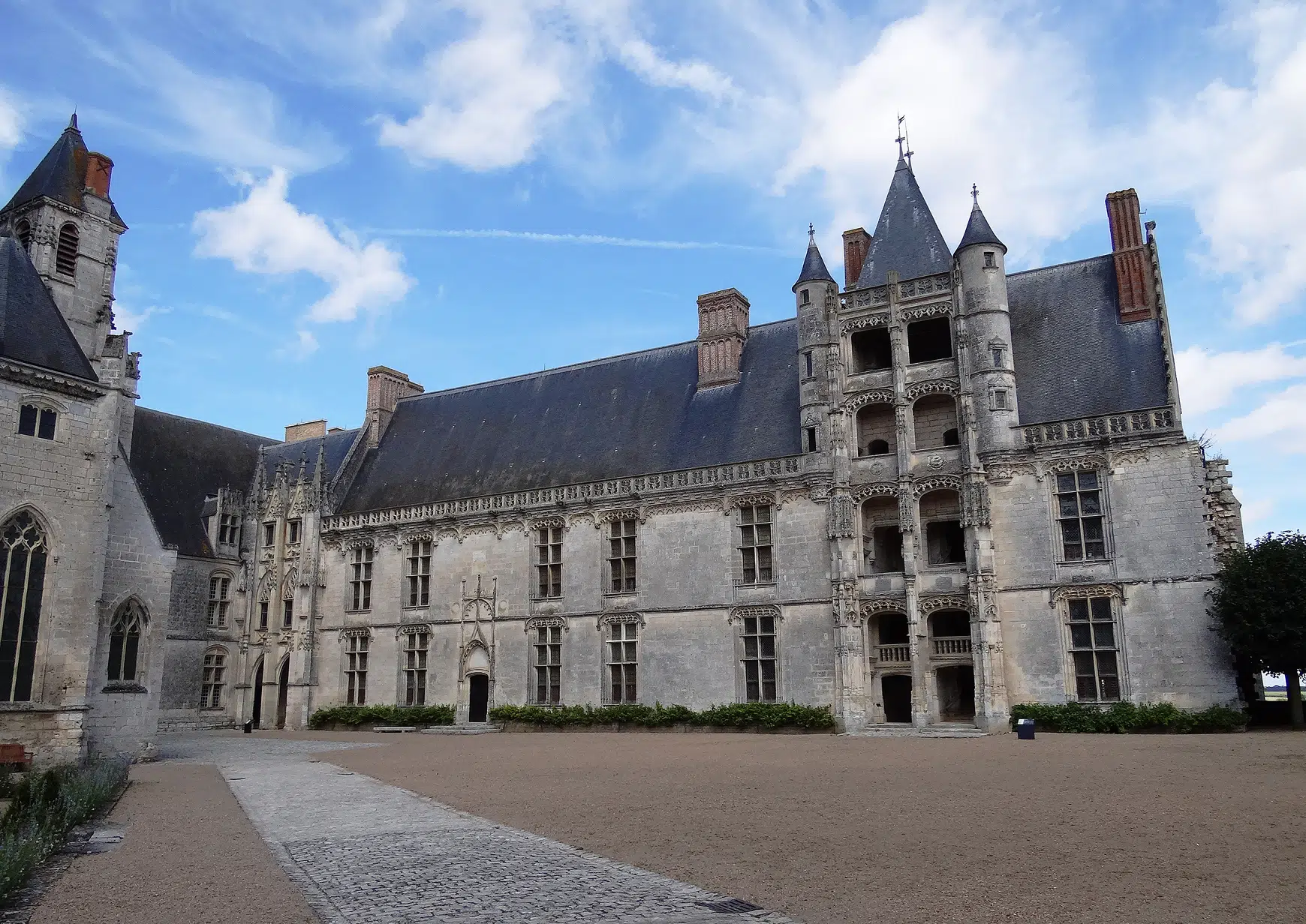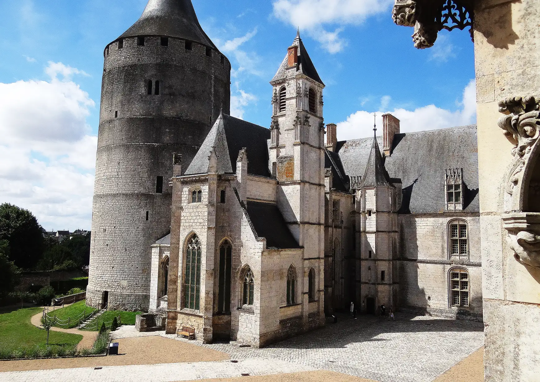 Rising above the Loir Valley, Château de Châteaudun was built from the twelfth to the sixteenth century by the Counts of Dunois, including Jean de Dunois, companion of Joan of Arc. It combines a medieval keep, Gothic halls, and early Renaissance wings, reflecting its role as a major feudal and royal residence.
