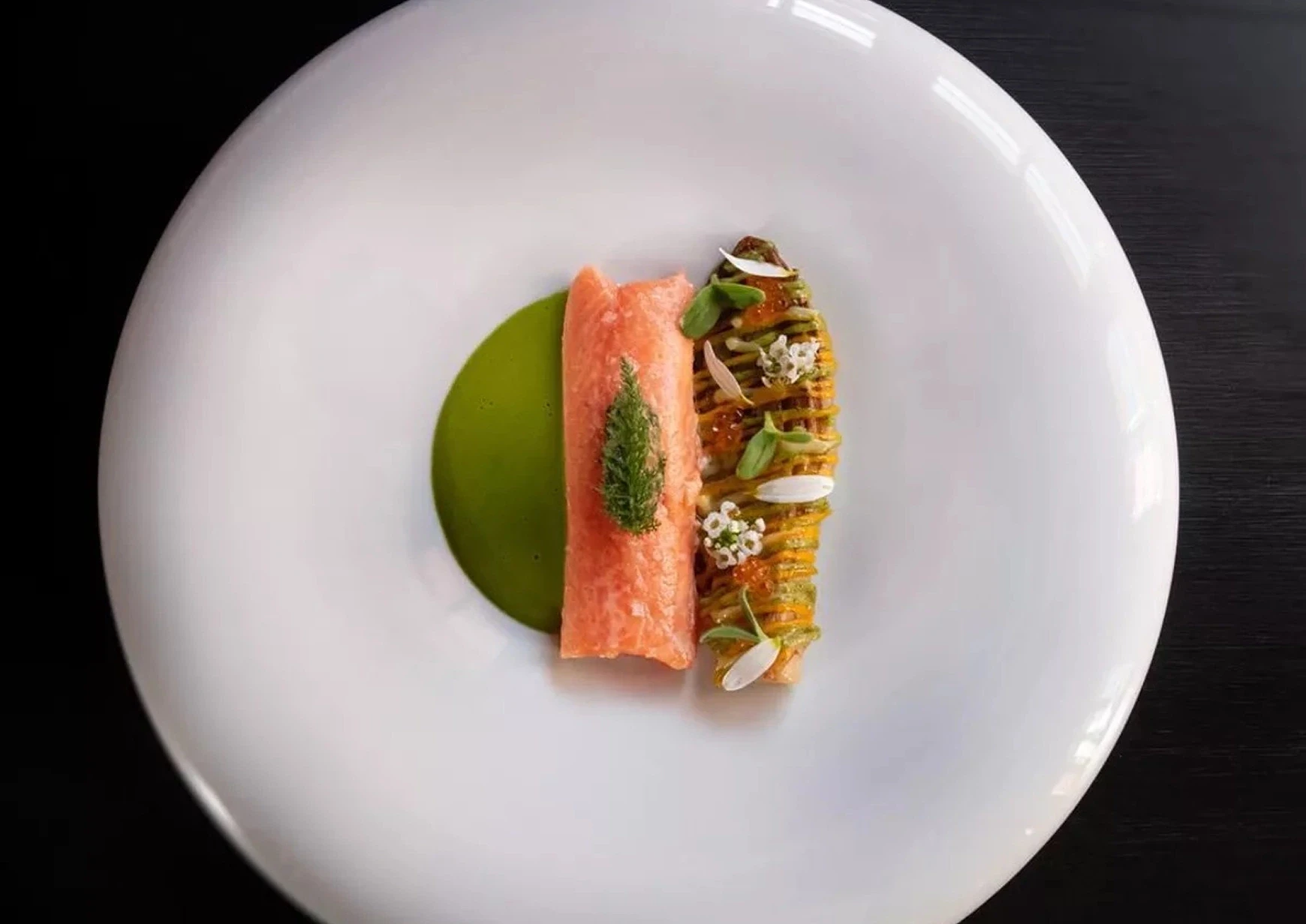 Set near Loches’ Royal Citadel, this contemporary restaurant is run by Clément Dumont and sommelier Océane. Dumont’s creative, plant-forward cuisine draws from his own kitchen garden and local producers, with Loire poultry, goat’s cheese, and wild herbs making regular appearances. The dishes are imaginative without losing clarity or focus—elegant but grounded in the region. The terrace beneath a flowering wisteria offers a tranquil setting for seasonal tasting menus that celebrate freshness and finesse.